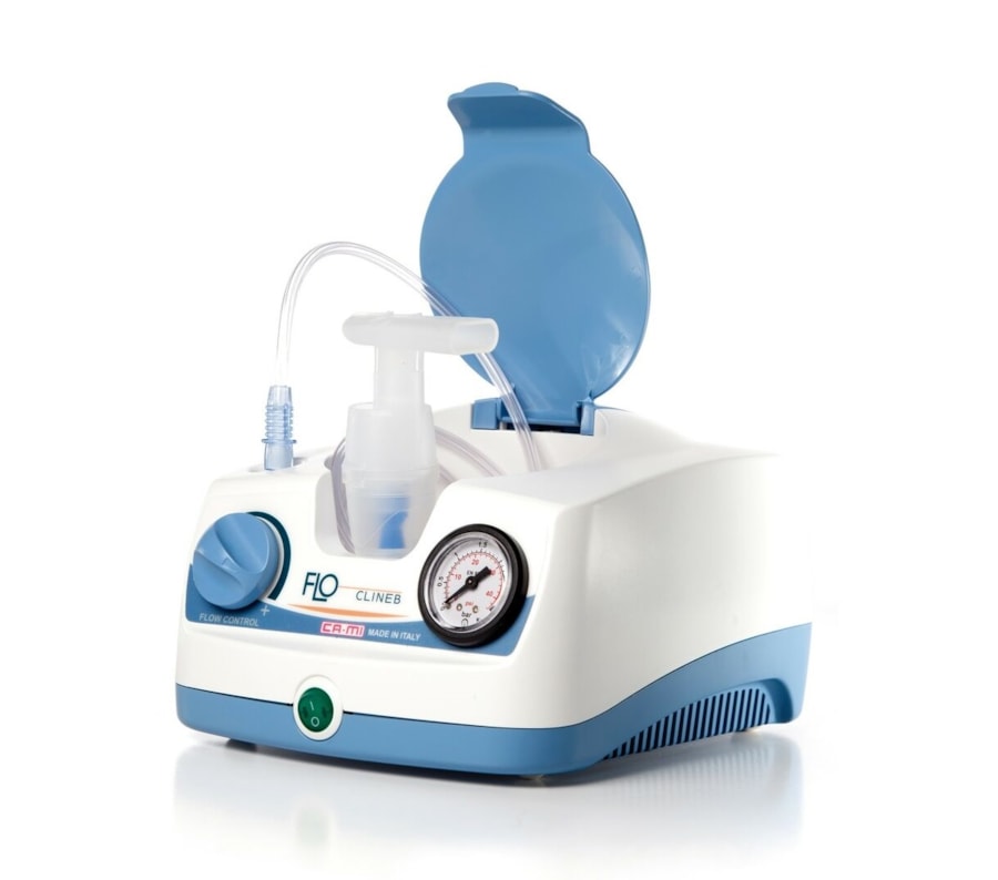 CLINEB PRO é um aparelho de aerossolterapia com compressor de pistão, indicado para terapia intensiva em clínicas e hospitais. É equipado com regulador de pressão e indicador e novo kit nebulizador HI-4 com 4 velocidades diferentes e com sistema de v