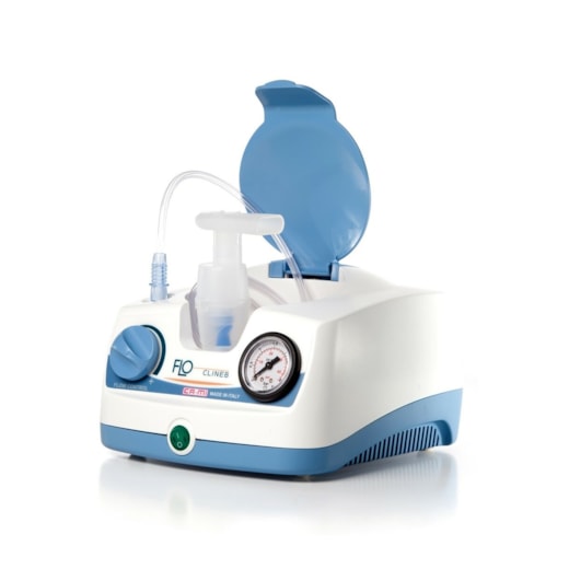 CLINEB PRO é um aparelho de aerossolterapia com compressor de pistão, indicado para terapia intensiva em clínicas e hospitais. É equipado com regulador de pressão e indicador e novo kit nebulizador HI-4 com 4 velocidades diferentes e com sistema de v
