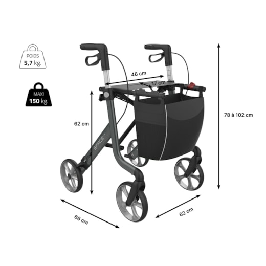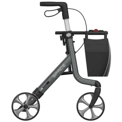 Perfil e Instruções de Utilização: O andarilho Space tem uma estrutura única em forma de X que permite limitar o seu peso, mantendo a robustez e a rigidez. Serve para facilitar a mobilidade de alguém com dificuldade em andar. O andarilho proporciona estabilidade, suporte e segurança durante a deambulação. Montar o andarilho conforme o manual e utilizá-lo apenas em superfícies planas e seguras. Não usar em pisos irregulares ou escorregadios nem se houver peças danificadas. Quando estiver parado, acionar sempre os travões.